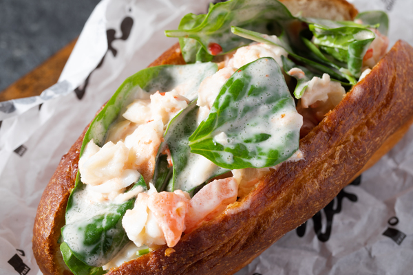 Ассамбляж 16 сортов винограда с мягким и нежным ароматом выступает парой к краб-догу в сладковатой бриоши — безупречный союз чудесного rosé и роскошной интерпретации классики джанкфуда.