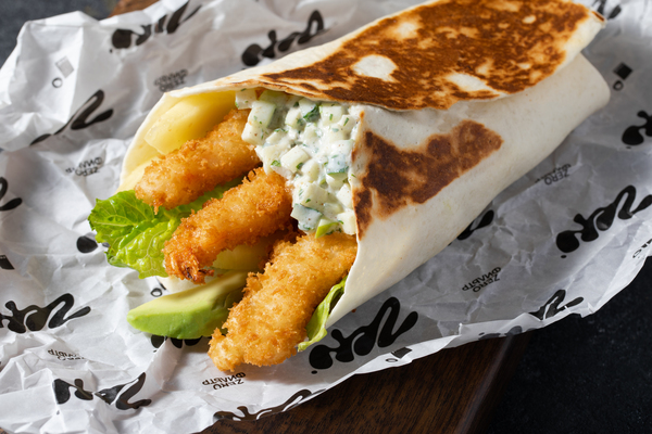 А оранж сорта альбариньо с его структурированным вкусом с интенсивными цитрусовыми тонами и сухим, пикантным послевкусием создает идеальный баланс ярким вкусам шаурмы в тортилье с креветками в темпуре, авокадо, свежим манго и соусом со специями гарам масала.