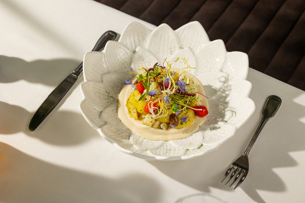 Меню открывает крем-суп из зеленого горошка с обжаренным миндалем (890 руб.) — нежный, бархатистый, с ореховым акцентом и легкой сладостью молодого горошка. В качестве закуски шеф предлагает обжаренные артишоки с хумусом из нута (1950 руб.) и салат из цветной капусты (950 руб.). Среди горячих блюд — ньокки в стиле «Соррентина» с копченым тофу (1150 руб.), где традиционный итальянский характер сочетается с современным прочтением и легкой дымной нотой. Ризотто со сморчками, обжаренной спаржей и вялеными томатами (1650 руб.) раскрывает богатство весенних вкусов. Отдельного внимания заслуживает свекла «Россини» с черным трюфелем (1450 руб.). А для ценителей насыщенных текстур — стейк из сельдерея с кейлом и сезонными грибами (950 руб.), где овощ становится полноценным гастрономическим акцентом.